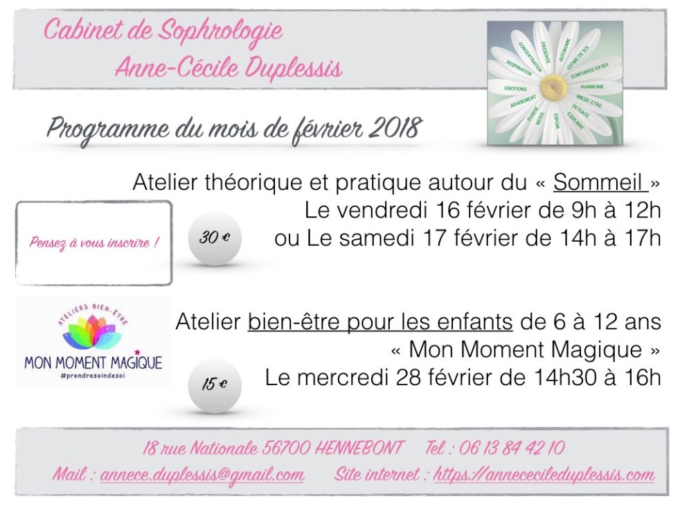 Retrouvez moi le 23 mars à Merlevenez pour parler sommeil. Une problématique qui touche 1 français sur 2. Il est nécessaire de comprendre le fonctionnement du sommeil pour mieux réguler son horloge biologique. Sur une initiative du Foyer Culturel des Jeunes de Merlevenez.