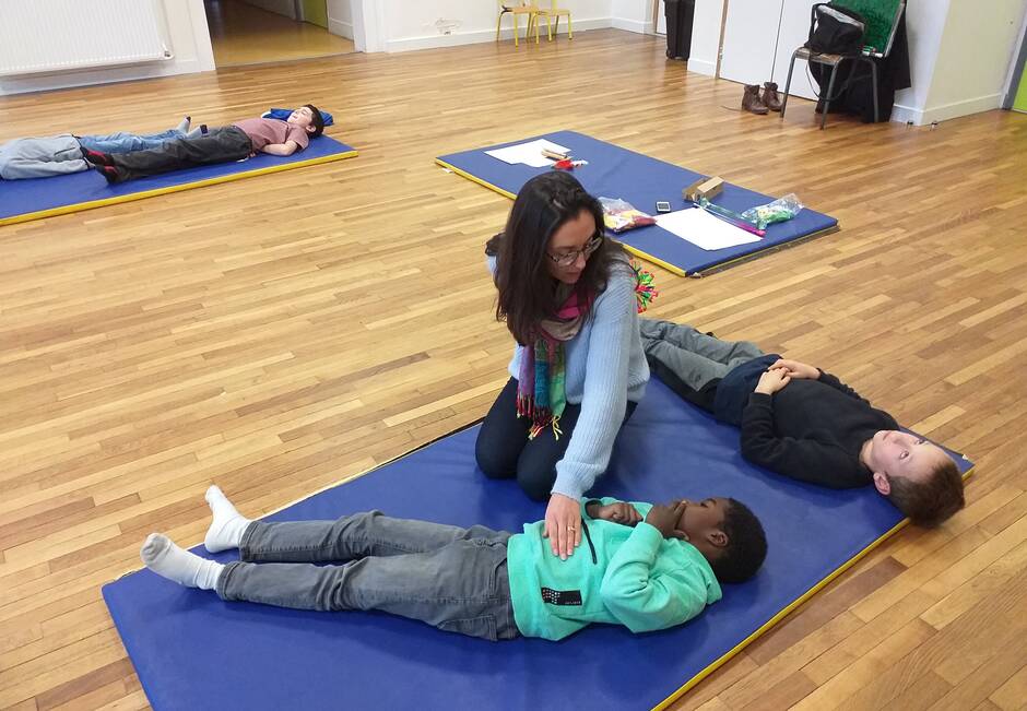 Anne-Cécile Duplessis, sophrologue, a initié les enfants et leurs animatrices à l’occasion d’un stage organisé sur deux matinées.